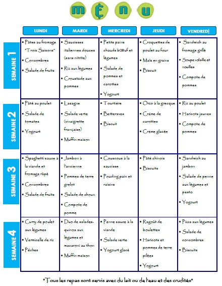 Les élèves peuvent aussi apporter leur lunch ou dîner à la maison.
